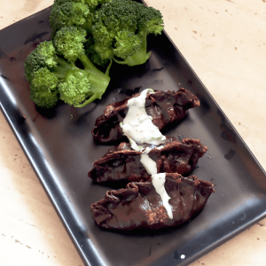 Transfer to a plate and serve with sour cream mixed with minced garlic (or garlic powder) and fresh parsley.